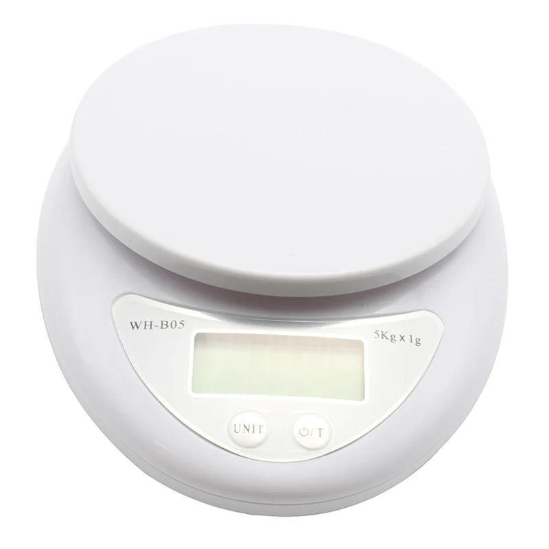 Here is a digital kitchen food scale. It has a capacity about 200oz (12.5lb)/ 5000g (5kg), accuracy: 0.1oz / 1g. It weighs in kg, oz, lb and g. And it very light, you can carry it to food market for accurately control your daily diet. Health and real-life.